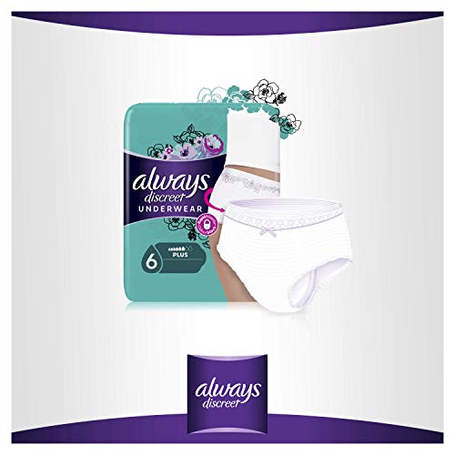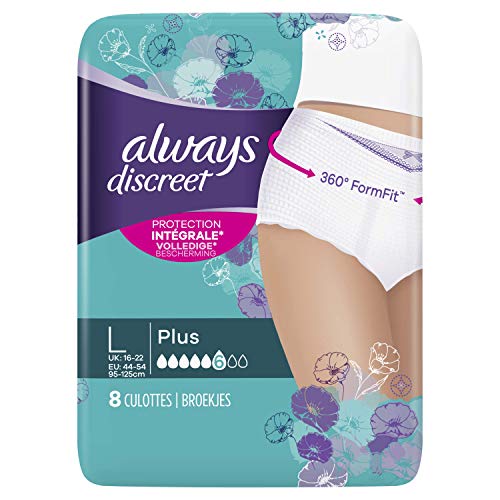 Incontinentie hoeft geen beperking te zijn. Met Always Discreet Incontinence Panties Plus Maat L kunt u doorgaan met uw gebruikelijke activiteiten en beschermd blijven, zelfs als u grote hoeveelheden urine verliest, als gevolg van plotselinge drang om te plassen of activiteiten met hoge activiteit. Het extreem absorberende slipje is voorzien van RapidDry-technologie om geurtjes als gevolg van blaaszwakte tegen te gaan. Dubbele lekbescherming helpt lekkage te voorkomen. Met 360° -FormFit voor een comfortabel passende Passvorm. Ga door het dagelijks leven met het gevoel een discrete en betrouwbare bescherming te hebben. Always Discreet Incontinentie Slipje Plus voor blaaszwakte biedt u de eersteklas bescherming van Always tegen vocht als u last heeft van een gevoelige blaas of regelmatig last heeft van ongewenst urineverlies.