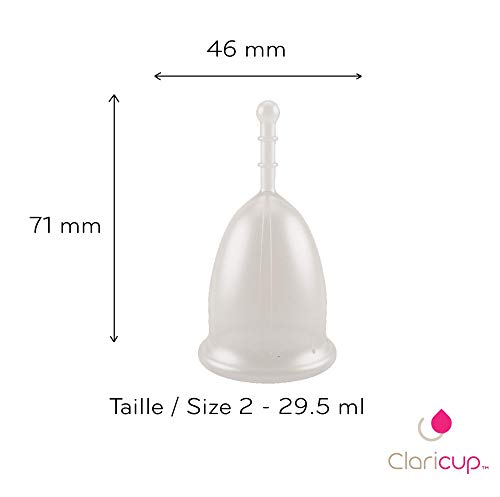 Claricup menstruatiecup en sterilisatiebox – grootte 0 x zacht, flexibel, eenvoudig te bedienen – ideaal voor jonge meisjes of zeer lichte bloedingen – medische siliconen zonder ftalaten, zonder chloor, zonder pesticiden – levering met transport- en sterilisatiebox in de magnetron – herbruikbaar tot 5 jaar – om de 6 uur leeg te maken – gecertificeerd volgens ISO13. 48/2016. Gezondheid, Canada, MDSAP Canada, MDSAP USA, FDA.