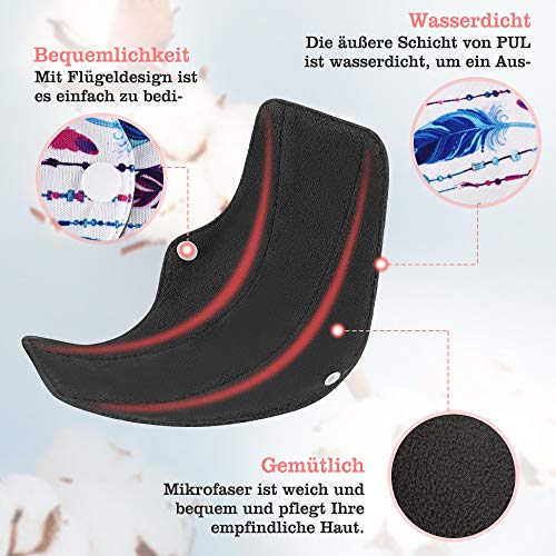 [Super comfortabel en praktisch] De wasbare Exqline damesbindenset 7 x 26 cm, behoort voor menstruatiekussens en incontinentiekussens voor vrouwen; 3 x 20 cm, hoort voor afgelegen vaginale afscheidingen en ijspring. De knoppen op de absorberende vleugels zijn gemakkelijk te openen en te sluiten, waardoor effectief wordt voorkomen dat de voering van het broekje valt en zijdelingse lekken worden voorkomen.