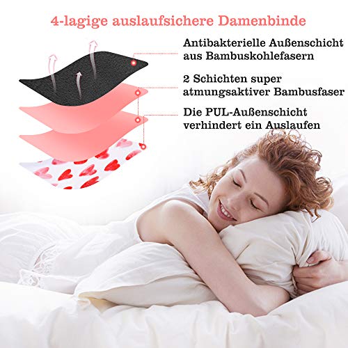 [4 lagen waterdichte, wasbare slipboeren] Exqline wasbare bamboevezel-maandverbanden bestaan uit 4 beschermlagen – 1 x binnenlaag van bamboekoolstofvezel, 2 x superfijne vezel-middenlaag en 1 x PUL-buitenlaag. De binnenste laag van microvezel is super absorberend en voelt droog aan. De middelste laag van bamboekoolstofvezel is antibacterieel, gezond, zacht en geschikt voor je huid. De PUL-buitenlaag is waterdicht om lekken te voorkomen.