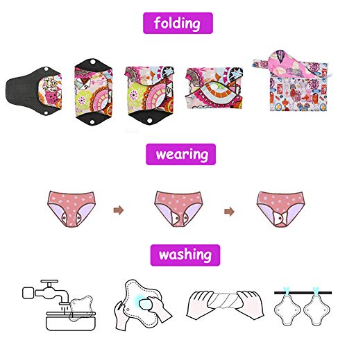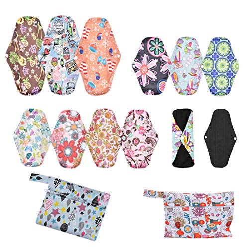 Specification: HahaGo 12 Pcs Herbruikbare Maandverband Pads Menstruatie Inlegkruisjes met Natte/Droge Zak, Zware Stroom Nacht Wasbare…