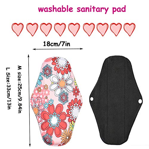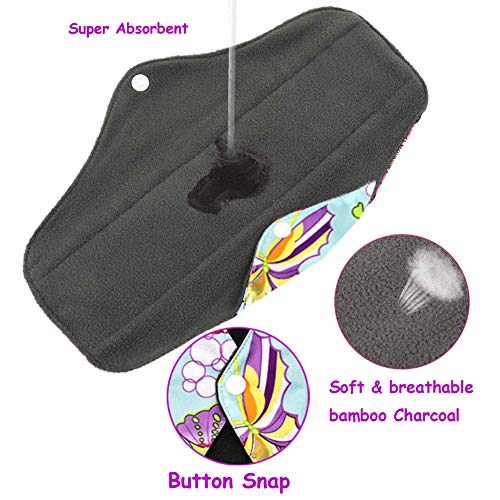 HahaGo 12-delige herbruikbare maandverband inlegkruisjes Maandverband Doek Postpartum-voedingspads Bamboe Houtskool-sanitair M & L-maat met waterdichte tas voor dames