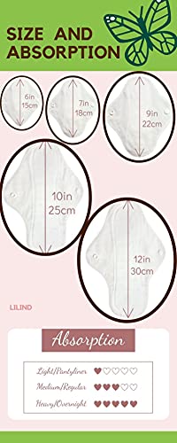 Specification: Lilind® 6 Pack 24 cm, dagelijkse inlegkruisjes, organische stoffen pads, herbruikbare maandverband, 100% katoen, mix…