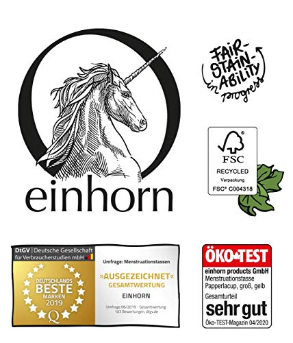 Specification: Papperlacup menstruatiecup by Einhorn – medische siliconen, duurzaam, made in Germany (medium)
